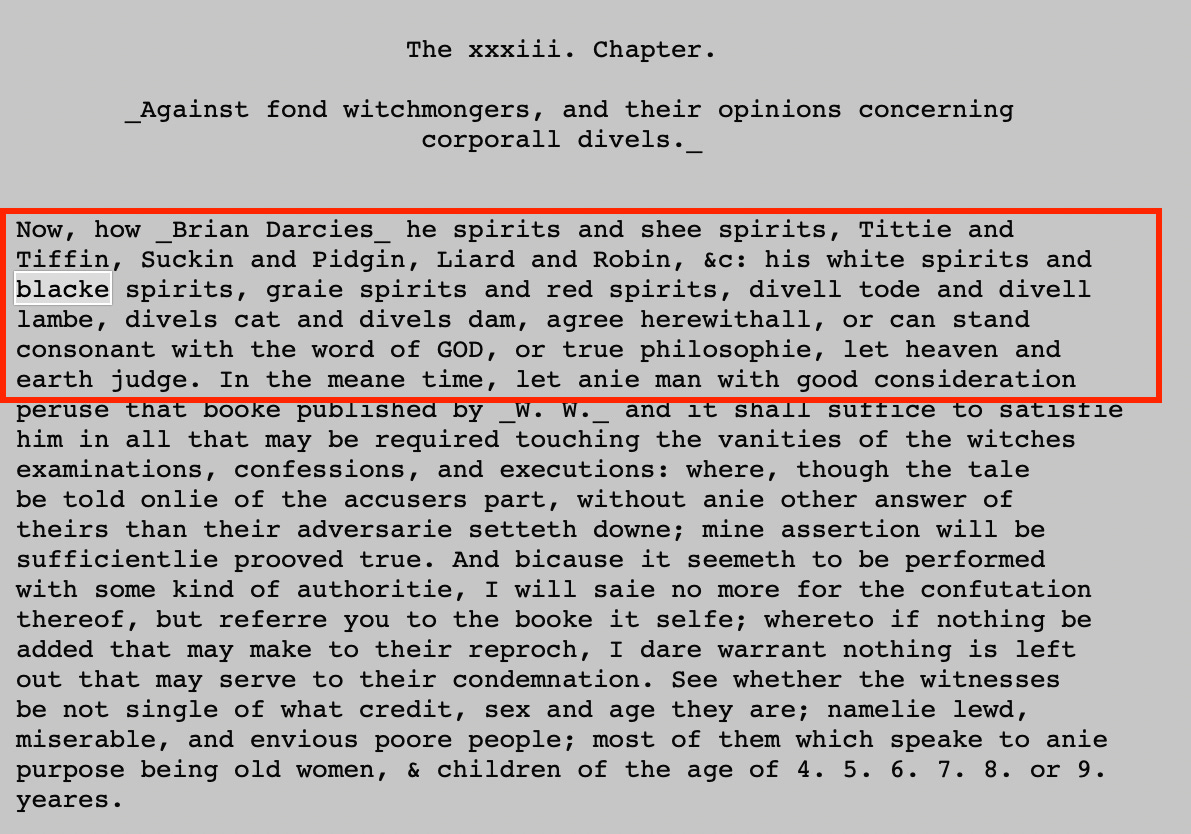 But, taking it a step further, I wanted to know where Denham dug up this word. The list of creatures cited by Denham was probably sourced from the Discoverie of Witchcraft (as this excerpt from the wikipedia page states). I did some digging, but it is true that the trail mostly goes cold after that.